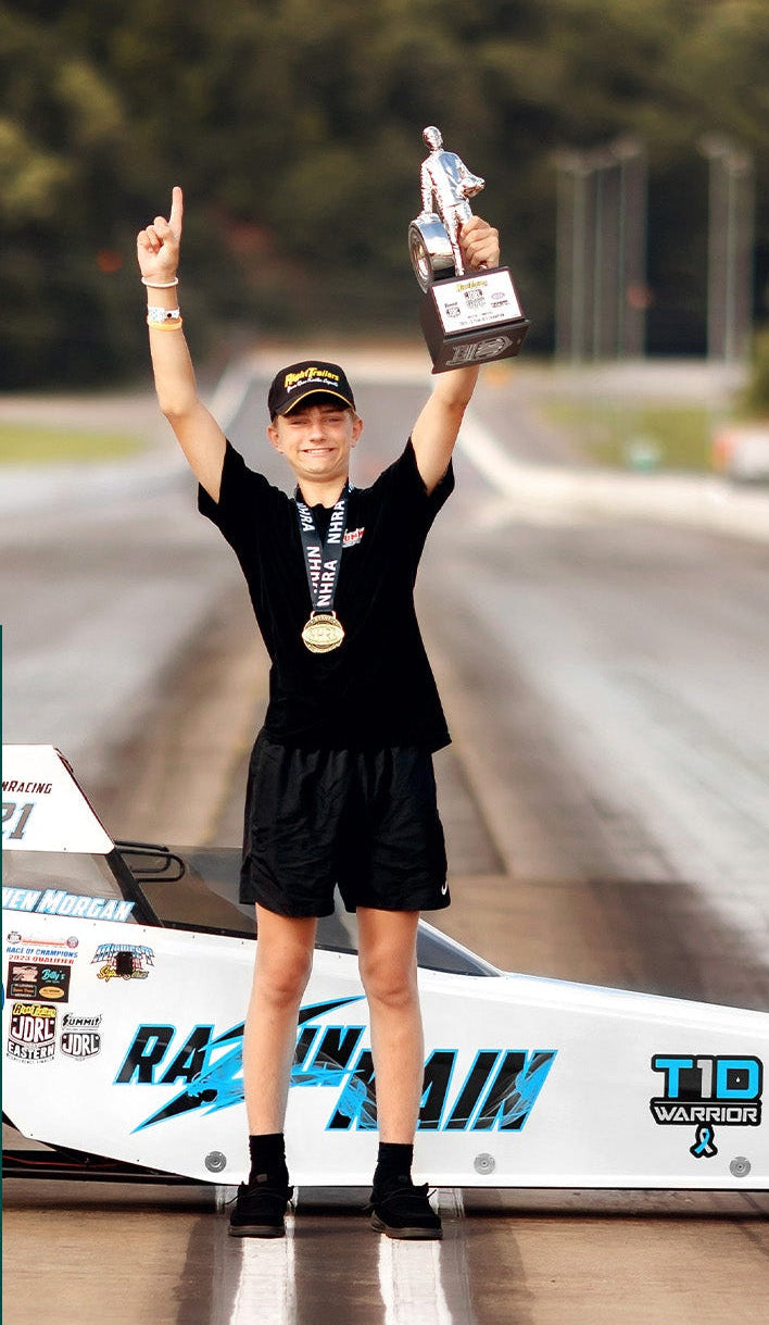 Kainen Morgan is a proven competitor with multiple wins and runner-up finishes, including back-to-back IRP Track Championships in 2023 and 2024, a 2025 runner-up track championship finish, and a 13-year-old Eastern Conference Finals Championship in 2025.