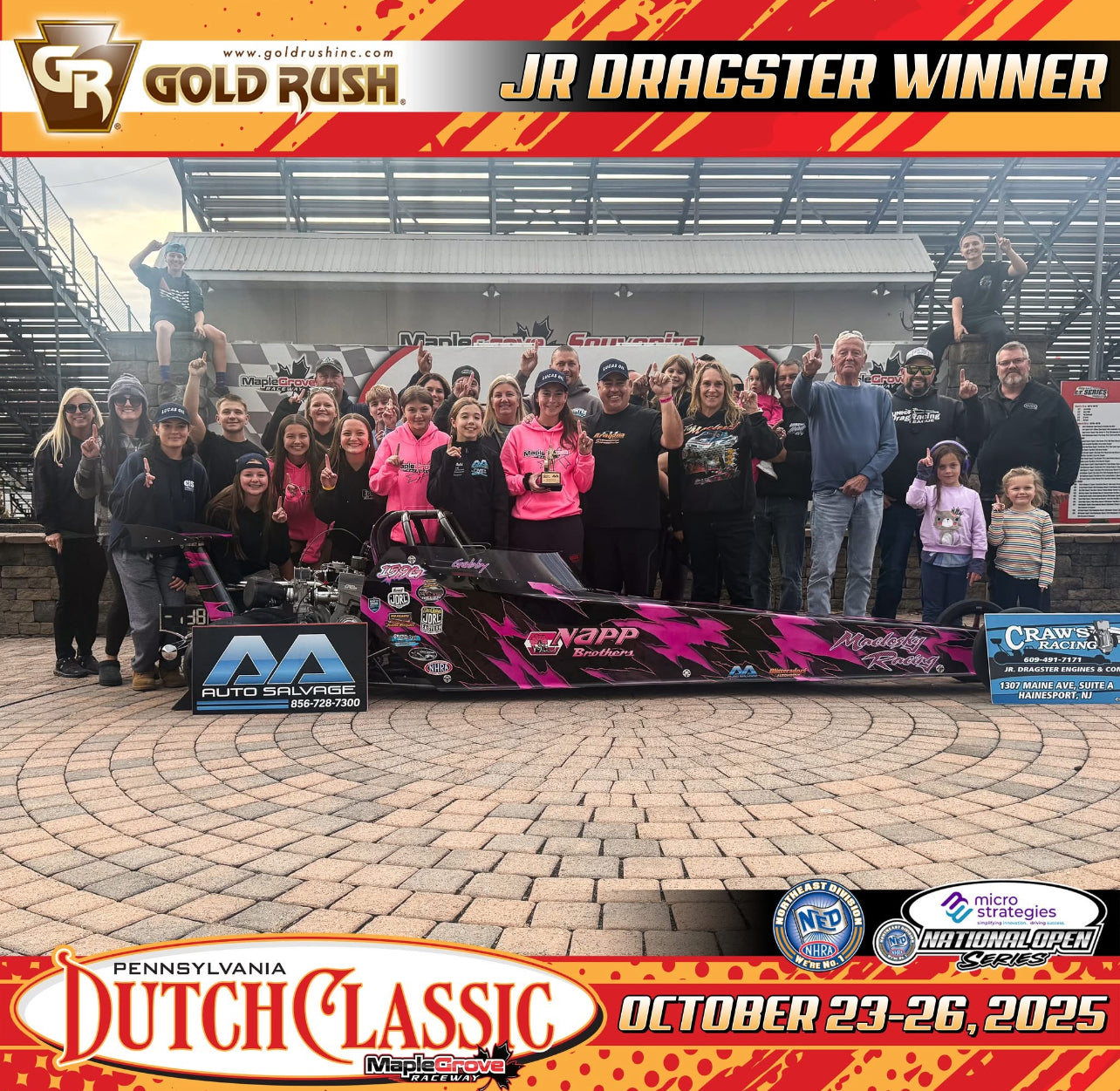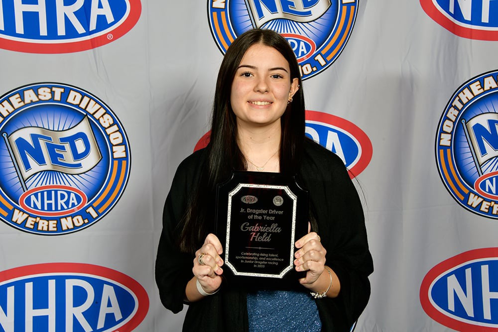 Gabriella has already earned several accomplishments, including a win at EPCAL, a victory at the Maple Grove Halloween Race, and her first NHRA Divisional Wally at Maple Grove. She also spent much of the season leading in points and was named 2025 Junior Dragster Driver of the Year.